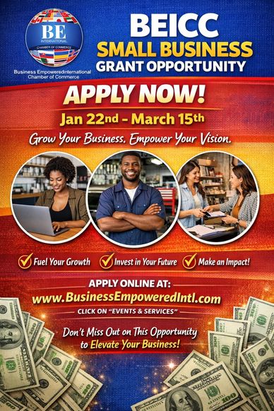 The Business Empowered International Chamber of Commerce Small Business Grant Opportunity is designed to support entrepreneurs and small business owners with funding that fuels growth, strengthens operations, and increases community impact. This initiative empowers business leaders to invest in their vision, expand capacity, and elevate their business while contributing to economic development and long-term sustainability.